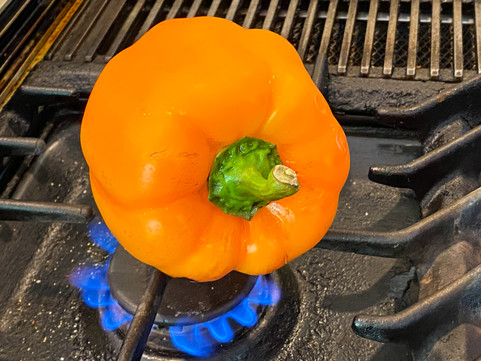 Wash and dry the bell peppers. Using metal tongs, place the pepper directly over a medium flame and turn as necessary once they char on all sides. This will take between 15-20 minutes.